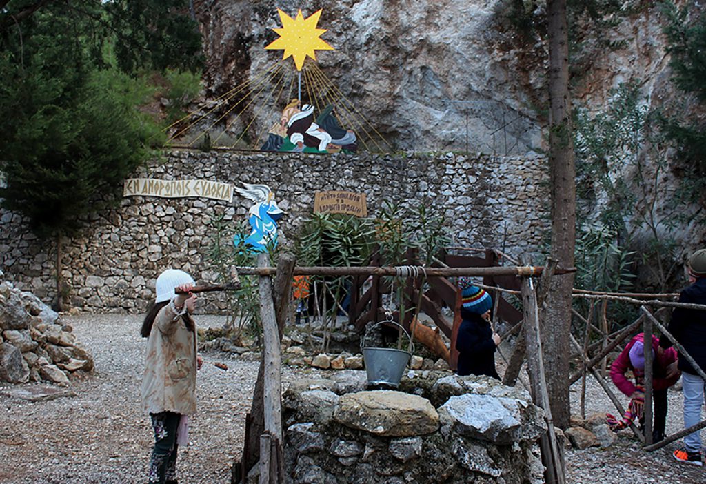 Οι Άγιες Μορφές Του Ιερού Βρέφους, Της Μητρός Παρθένου Μαρίας και Του Αγίου Ιωσήφ, γιομίζουν το πανάρχαιο, αλώβητο και διαμπερές, λαξευμένο από τη φύση σπήλαιο, «ενσαρκωμένα» πάντα από αθώα και γλυκά προσωπάκια μικρών παιδιών, αναβιώνοντας το μέγα γεγονός Της Γέννησης.