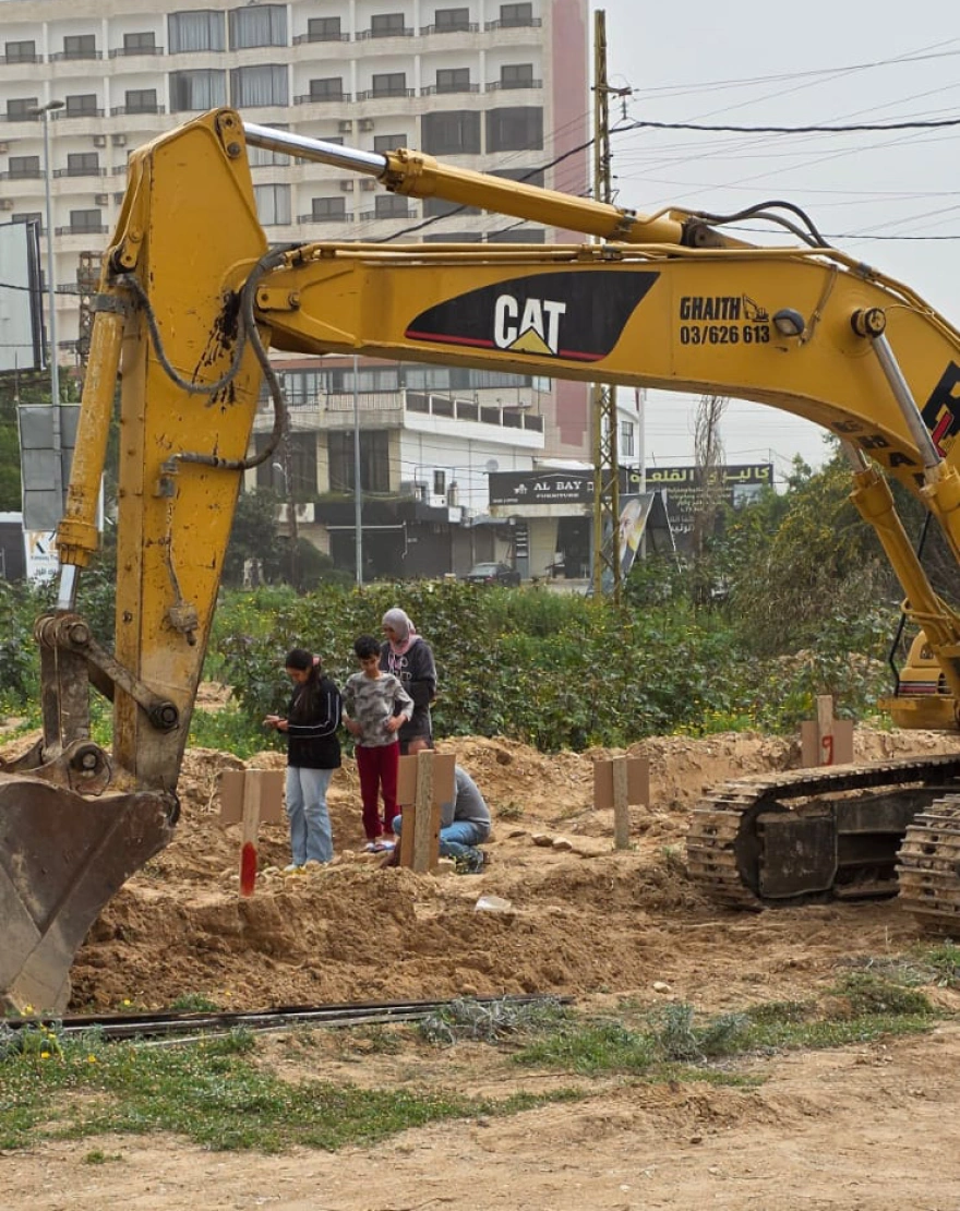 Έτσι, η «λύση» βρέθηκε στους ελάχιστους ανοιχτούς οικοπεδικούς χώρους που υπάρχουν στην Τύρο. Το protothema.gr βρέθηκε μπροστά σε αυτές τις δραματικές εικόνες, καταγράφοντας τις ταφές. Με μια μπουλντόζα ανοίχτηκε ένα χαντάκι βάθους περίπου δύο μέτρων με τις σορούς 13 ανδρών να τοποθετούνται εκεί «προσωρινά», όπως λένε οι συγγενείς τους.