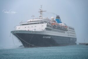 Σήμερα ο φακός μας κατέγραψε εντυπωσιακές και ταυτόχρονα απαιτητικές στιγμές από τον απόπλου του Blue Sapphire, μέσα σε ιδιαίτερα ακραίες καιρικές συνθήκες. Οι άνεμοι και η θαλασσοταραχή δυσκόλεψαν κάθε διαδικασία, με το πλοίο να επιχειρεί την έξοδό του τόσο με τα δικά του μέσα όσο –κυρίως– με την καθοριστική συνδρομή των ρυμουλκών.