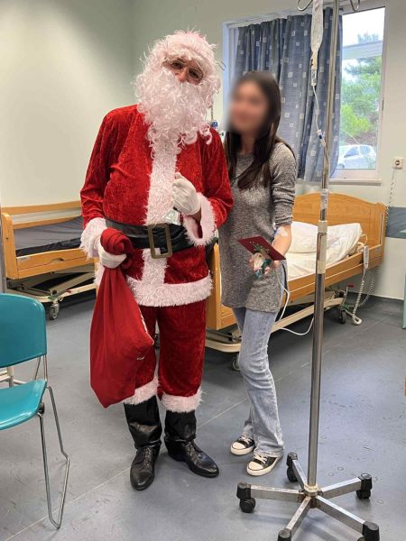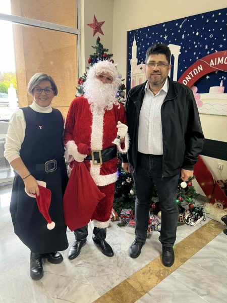 Τη Δευτέρα 22 Δεκεμβρίου, αντιπροσωπεία του Συλλόγου, αποτελούμενη από την Πρόεδρο κα Μαρία Κρητικού, τον Ταμία κ. Γιώργο Γεωργουδιό και την εθελόντρια κα Δέσποινα Μανιά, επισκέφθηκε την Ογκολογική Κλινική, όπου μοίρασε τις χριστουγεννιάτικες κάρτες στους παρευρισκόμενους ασθενείς, συνοδευόμενες από γλυκίσματα, ευγενική χορηγία της εταιρείας ΚΟΥΡΟΥΚΛΙΔΗΣ Κ. & ΣΙΑ Ο.Ε..