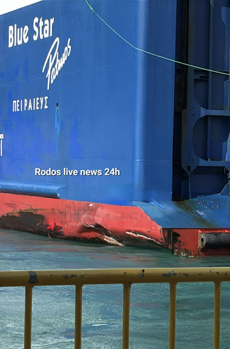 Το πλοίο Blue Star Patmos δεν κατάφερε να δέσει στο λιμάνι του Καστελλόριζου. Κατά τη διαδικασία προσέγγισης, το πλοίο ακούμπησε στο λιμάνι, με αποτέλεσμα να προκληθεί ζημιά, όπως φαίνεται και στη σχετική φωτογραφία.