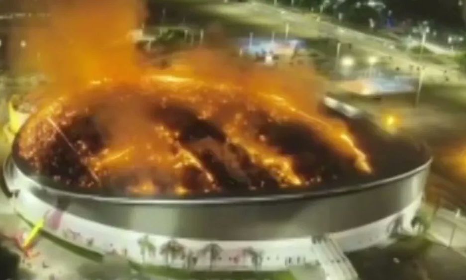Στις φλόγες τυλίχθηκε το Ολυμπιακό ποδηλατοδρόμιο του Ρίο στη Βραζιλία, όταν ξέσπασε πυρκαγιά, με τη φωτιά να εξαπλώνεται στην οροφή με παράξενο τρόπο όπως δείχνουν οι εικόνες, «σαν ιστός αράχνης».