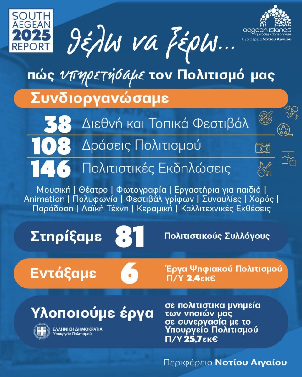 Απολογισμού συνέχεια. Χθές στον Αθλητισμό και σήμερα στον Πολιτισμό.