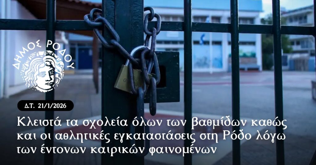Με απόφαση του Δημάρχου Ρόδου, Αλέξανδρου Κολιάδη, οι σχολικές
