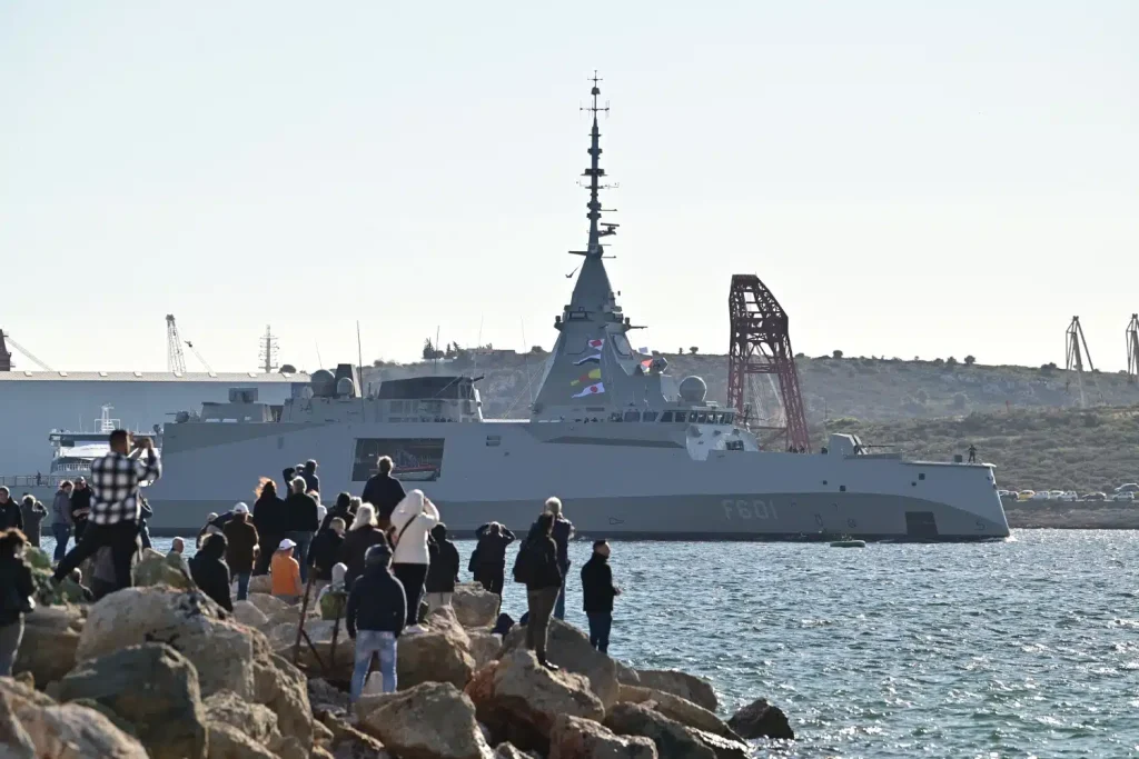 Η φρεγάτα κλάσης FDI HN «Belharra» πέρασε σε απόσταση αναπνοής από το πλήθος μπροστά από το λιμάνι της περιοχής, πριν κατευθυνθεί στον τελικό της προορισμό, τον ναύσταθμο της Σαλαμίνας.