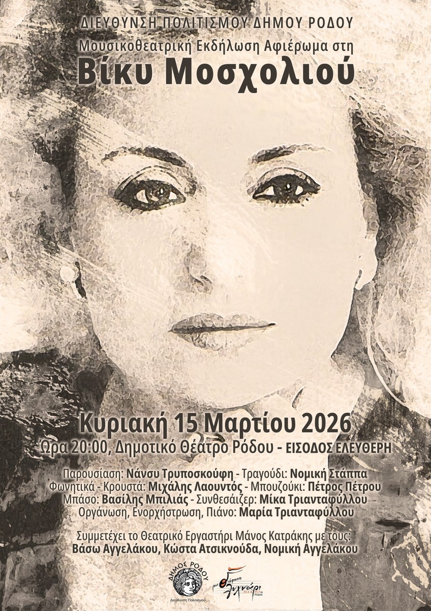 Κυριακή 15 Μαρτίου 2026 και ώρα 20:00, θα πραγματοποιήσει στο Δημοτικό Θέατρο Ρόδου