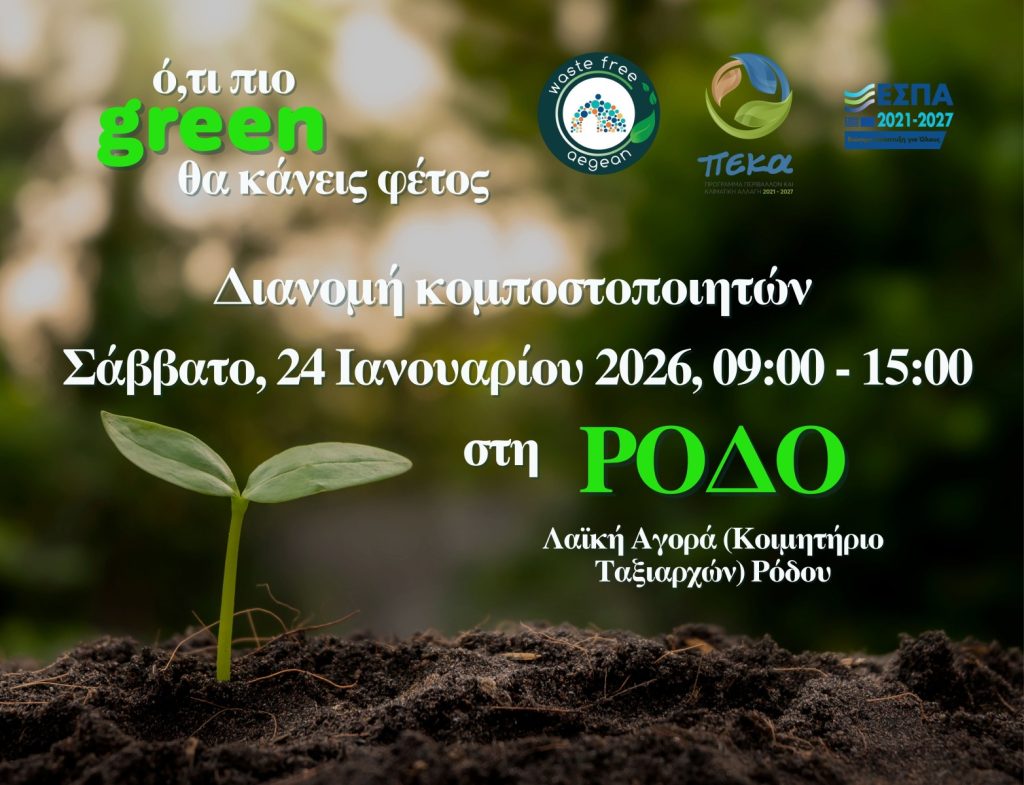 διανομή κομποστοποιητών στη Ρόδο, δίνοντας στους πολίτες τη δυνατότητα να μειώσουν τα απορρίμματα
