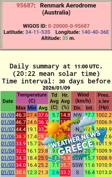 Το ισχυρό κύμα καύσωνα πλήττει το νότιο τμήμα της Αυστραλίας με τον υδράργυρο να δείχνει ακόμη και 49 βαθμούς Κελσίου σε κάποιες πόλεις αναγκάζοντας τις Αρχές να εκδώσουν προειδοποιήσεις και προκαλώντας υπερφόρτωση των δικτύων ηλεκτροδότησης και δασικές πυρκαγιές. Η πολιτεία της Βικτώριας απαγόρευσε στους πολίτες να ανάβουν φωτιές αύριο καθώς ο κίνδυνος πυρκαγιάς ορίζεται σε «καταστροφικός», το υψηλότερο δηλαδή επίπεδο. Περίπου 450 σχολεία και παιδικοί σταθμοί θα παραμείνουν κλειστά.