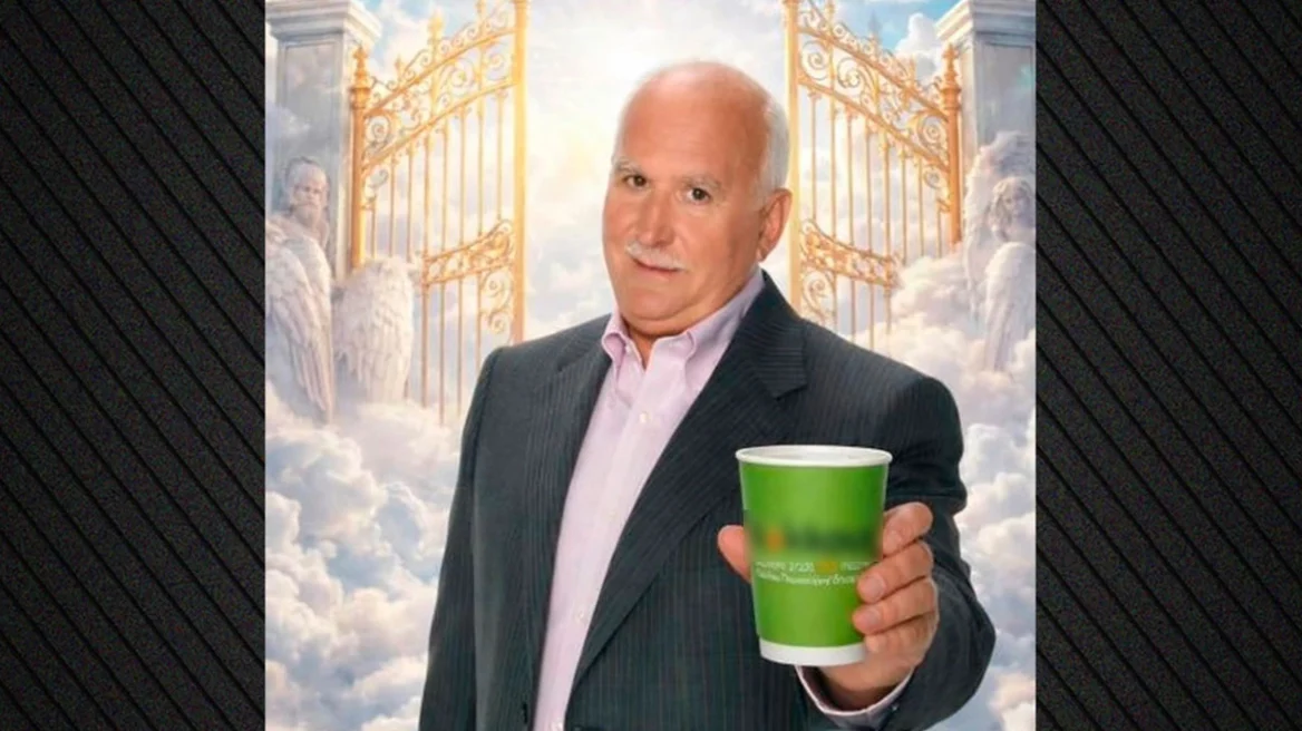 Σάλος με διαφήμιση μαγαζιού στη Μεσσήνη που δείχνει τον Γιώργο Παπαδάκη να πίνει τον καφέ του από τον Παράδεισο