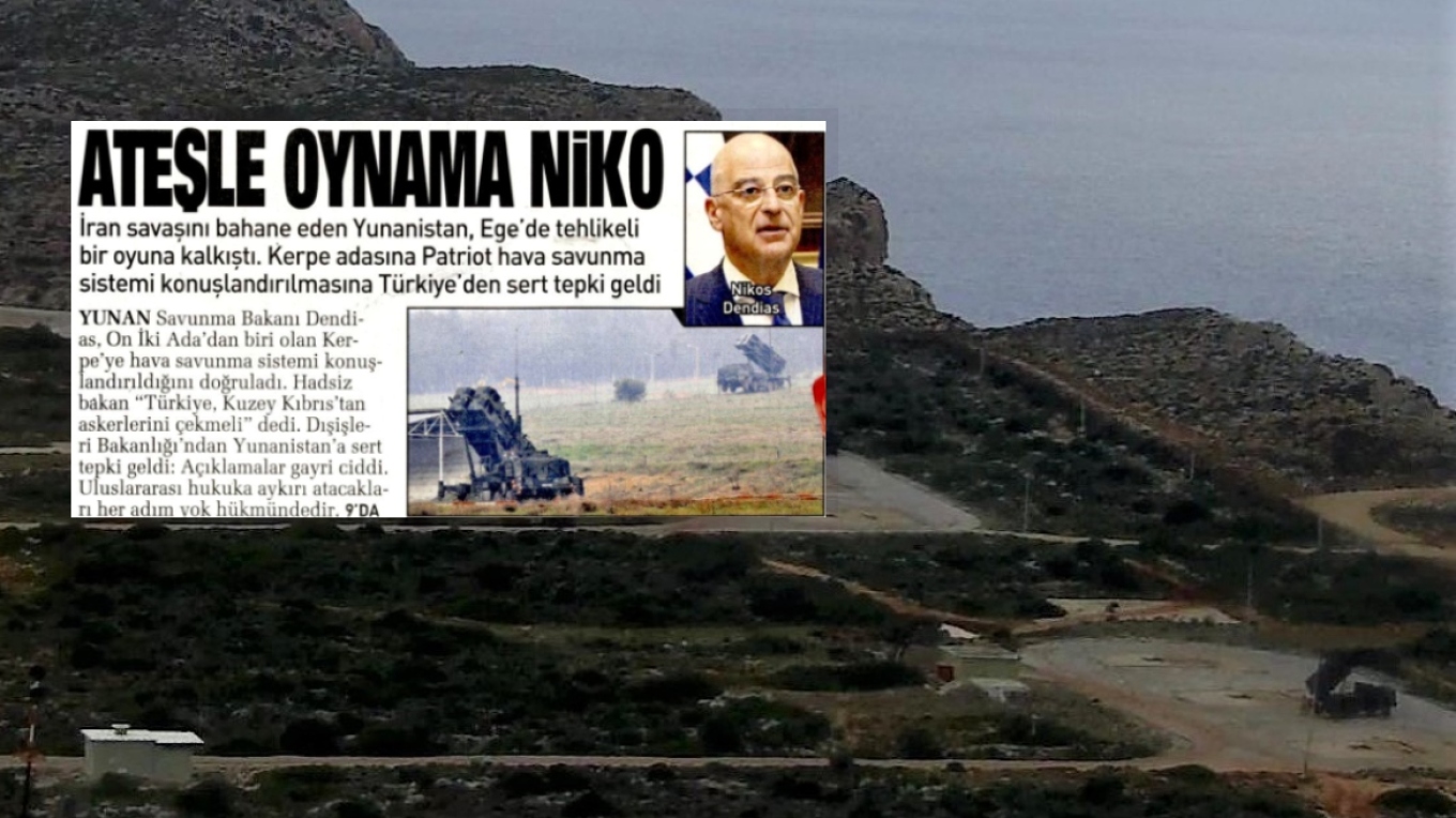 Η τουρκική εφημερίδα Sabah κυκλοφορεί σήμερα με τίτλο «Μην παίζεις με τη φωτιά, Νίκο», αποτυπώνοντας την έντονη ενόχληση της Άγκυρας σχετικά με τη μεταφορά συστοιχίας πυραύλων του αντιαεροπορικού συστήματος Patriot στην Κάρπαθο. Σύμφωνα με το δημοσίευμα, η Τουρκία θεωρεί τις ενέργειες της Ελλάδας επικίνδυνες και απειλεί να αντιδράσει «σύμφωνα με το διεθνές δίκαιο σε κάθε βήμα της Ελλάδας».