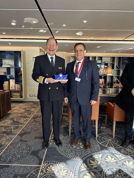 αναμνηστικές πλακέτες και δώρα με τον πλοίαρχο του κρουαζιερόπλοιου,