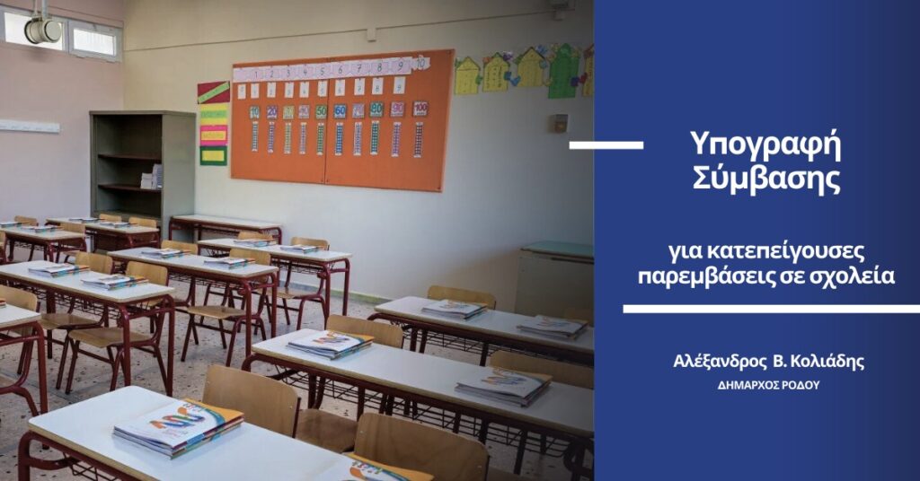 εργασιών που υπέγραψε ο Δήμαρχος Ρόδου Αλέξανδρος Κολιάδης.